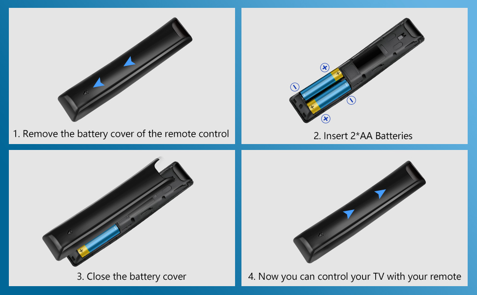 - 【 Use it right out of the box】The remote does not need to be programmed. Simply put in 2 AA batteries and start using it immediately. The package includes 2 remotes to help solve the need of having a backup remote control at home. (Note: Batteries are not included. )